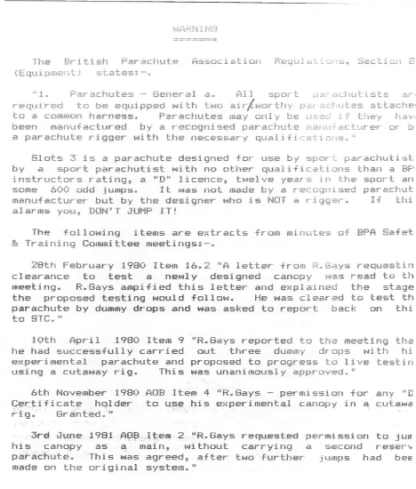 Parachuting in the 80s