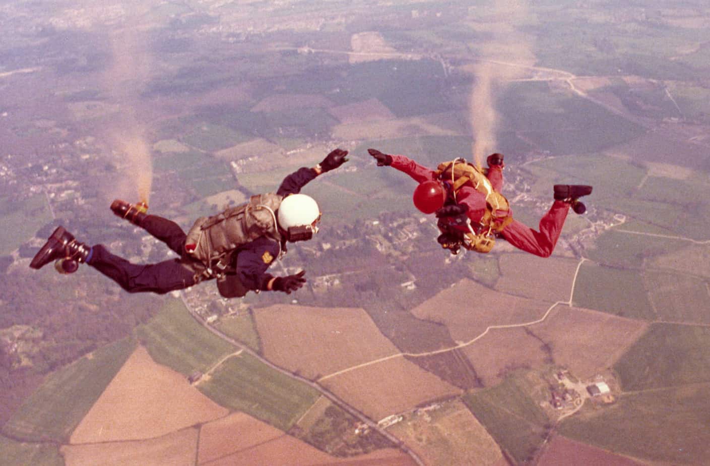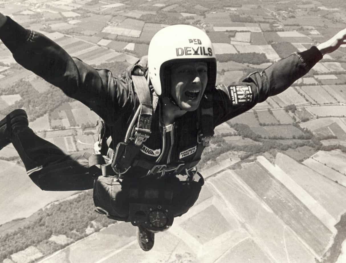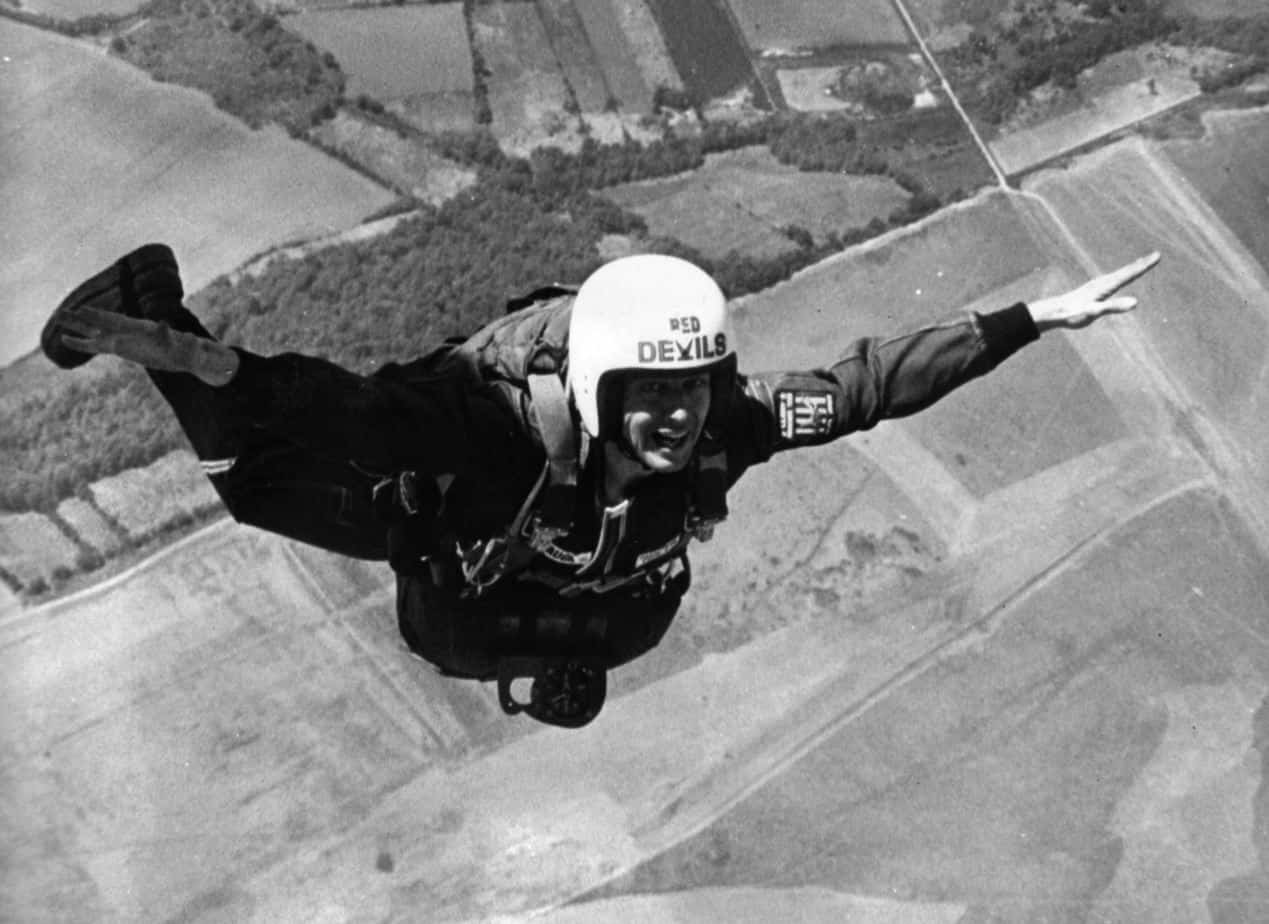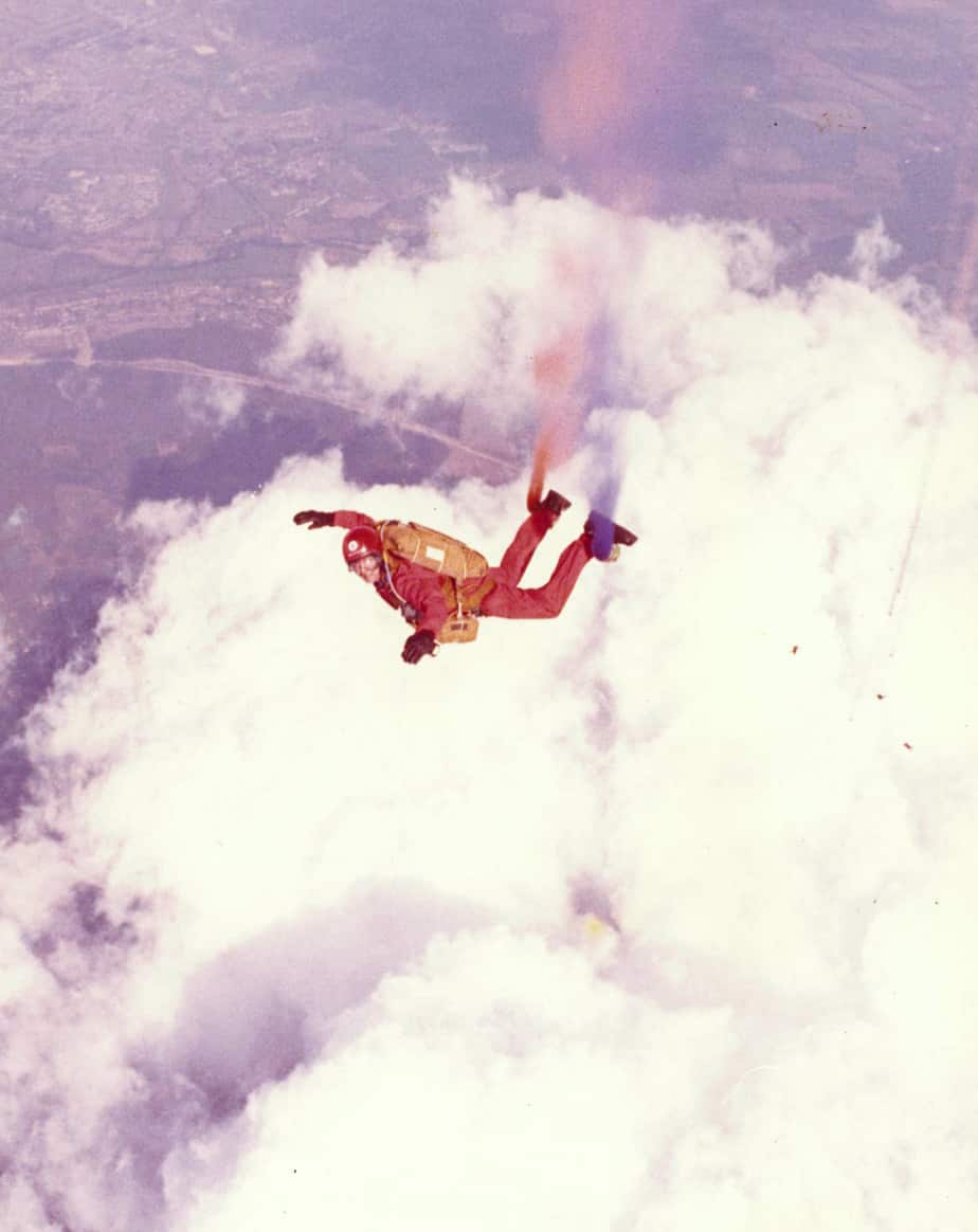 In 1973 the RAF Falcons asked John Noakes if he would like to make a five mile free fall jump. He successfully completed the jump on 15th May 1973 and achieved three “firsts” in the process: the first civilian in Britain to make a five mile high free fall; the first outsider to join the Flying Falcons; and the first television presenter in Britain to talk to a camera while falling through space. Needless to say, the jump got John into the Guinness Book of Records. His later jumps set the civilian freefall altitude record which stood for a number of years.